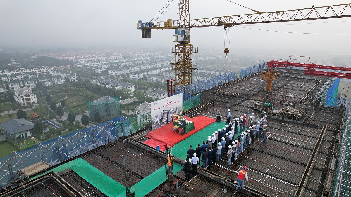 Sau hơn 9 tháng khẩn trương thi công, trải qua những khó khăn về thời tiết, đặc biệt là tình hình mưa lũ tại Huế, hôm nay lễ cất nóc toà W1 diễn ra theo đúng kế hoạch đã phê duyệt, thể hiện tâm huyết và quyết tâm của chủ đầu tư.
