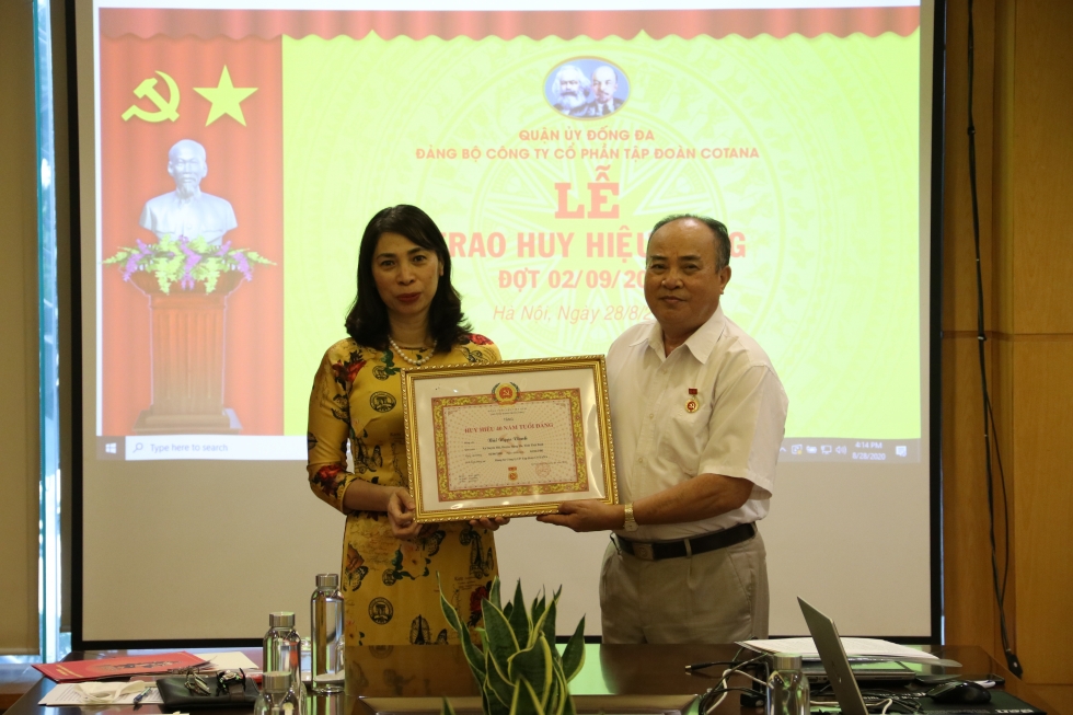 On the occasion of the 75th anniversary of the August Revolution and the National Day, Cotana Group's Party Committee is honored and proud to have 01 member receiving the noble badge of the Party on September 2, 2020. With the consent of the Standing Committee of Dong Da District Party Committee, the Party Committee of the Company solemnly held the Ceremony of awarding the 40-year-old Party badge to Comrade Bui Ngoc Vanh on August 29, 2020 at the headquarters of the Company.