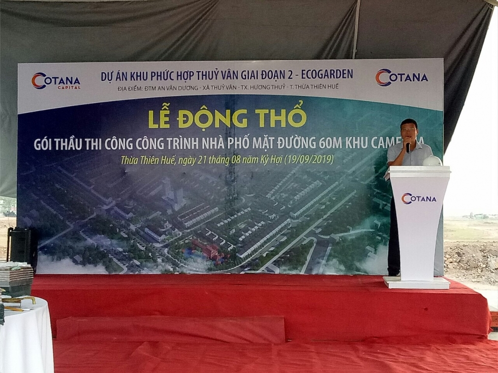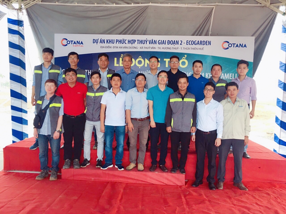 In the morning of September 19, 2019, Cotana Group - the general contractor for the construction of Ecogarden Urban Area (Thuy Van Complex Phase 2 - Belonging to Zone B - An Van Duong New Urban Area - Thua Thien Hue) held a construction groundbreaking ceremony of shophouses on a 60m street in Camellia area. The ceremony took place solemnly with the participation of Mr. Dang Anh Tuan - Vice Chairman of Cotana Capital’s Management Board - the investor of the project and representatives of the Project Management Board, the Board of Directors and representatives of the departments of Cotana Group.