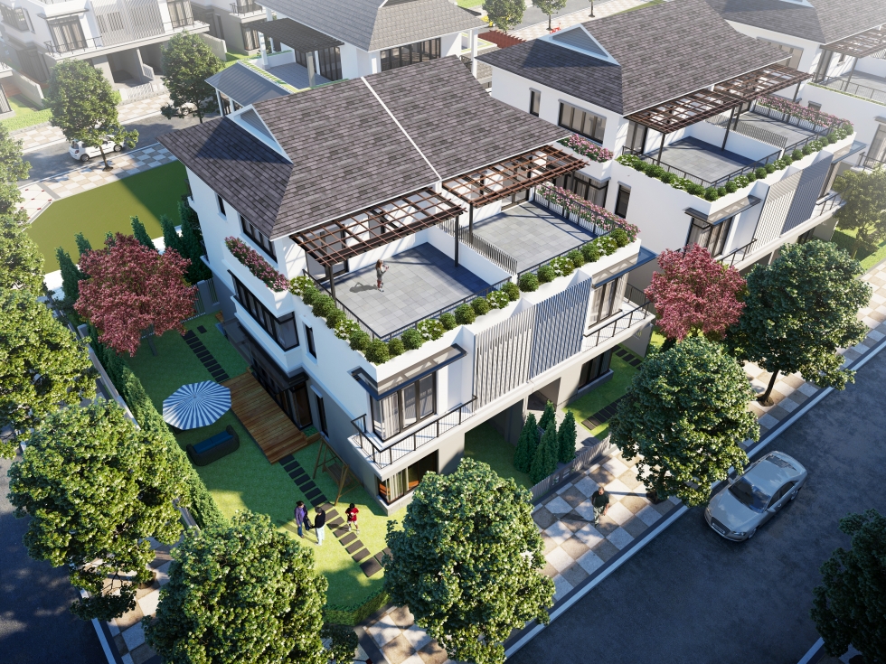 Camellia shophouses have two approaches: business approach from the big road, for commercial purposes, the approach from internal roads for residential purposes. This design style creates works that meet the needs of two residents: Just having a place to settle in an ecological community, while generating revenue from commercial business activities.