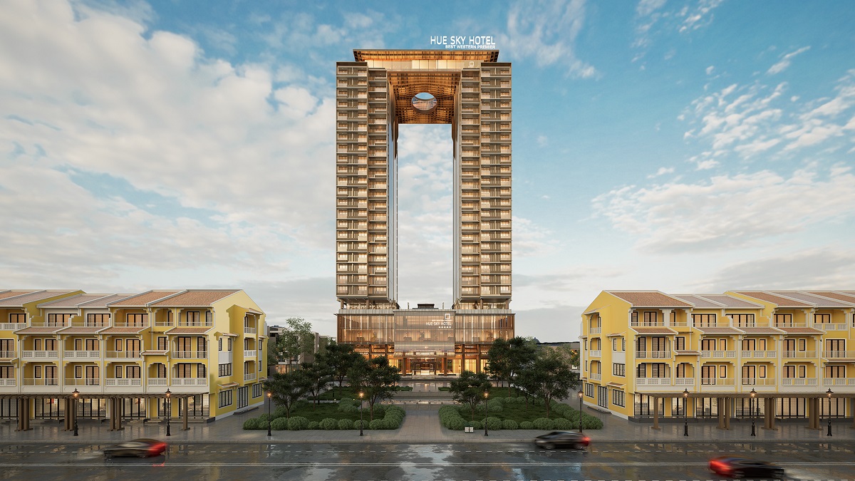 Best Western Premier Hue Sky Hotel sở hữu diện tích hơn 5.400m2 ngay mặt tiền Đại lộ Võ Nguyên Giáp (rộng 100m), vươn mình kiêu hãnh giữa dòng chảy di sản với hai tòa tháp 25 tầng và một tầng hầm sẽ cung cấp vào thị trường du lịch sôi động của Thành phố số lượng phòng nghỉ tiêu chuẩn quốc tế lớn nhất từ trước đến nay với 370 phòng.