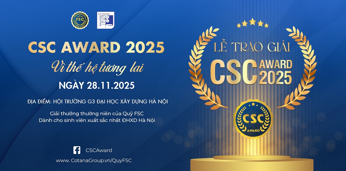Giải thưởng thường niên của Quỹ FSC dành cho những sinh viên xuất sắc nhất Đại học Xây dựng Hà Nội – sẽ chính thức diễn ra vào: